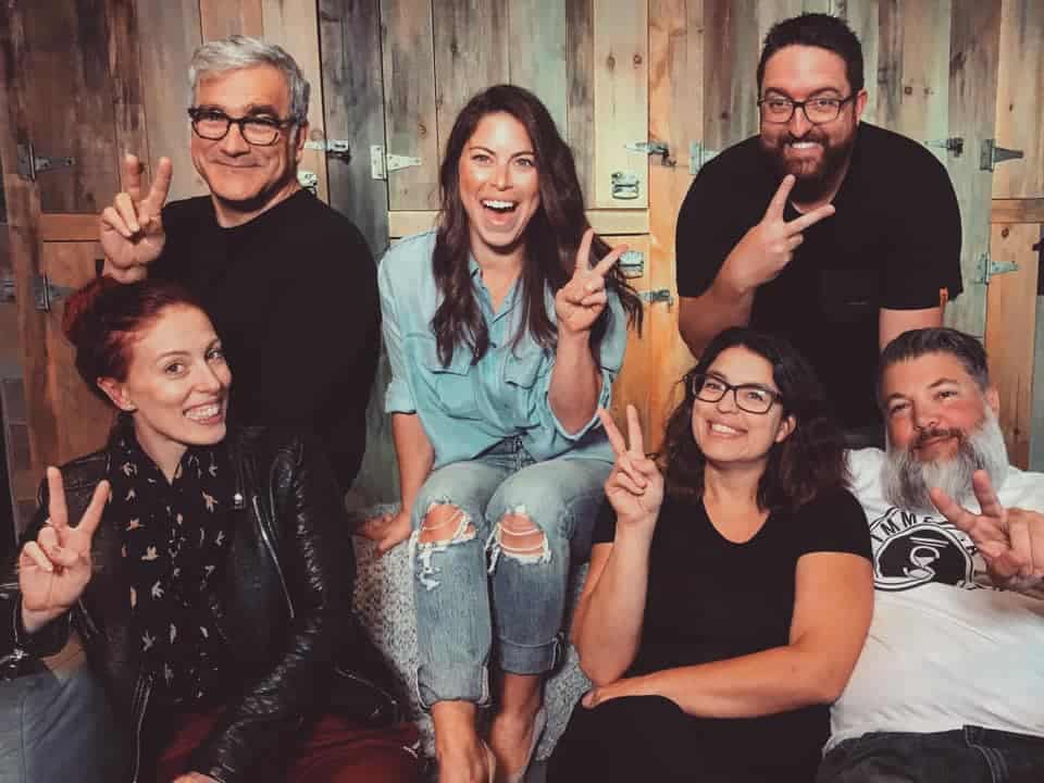 You could say we're a clan, because we're so tightly woven! Let me introduce ourselves. First, there's me, Roseline Filion, in charge of social media and public relations at Immersia, but better known as a two-time Olympic diving medalist: My brother Maxime is in charge of marketing; my cousin Marilyn is in charge of operations; her husband Stéphane Gilbert is artistic director; my other cousin Roxane is in charge of finance, but also sings and sings backup on the TV show En direct de l'univers; and her husband Stéphan Côté is in charge of technological development, but we know him better as an actor on the TV show District 31, among others.