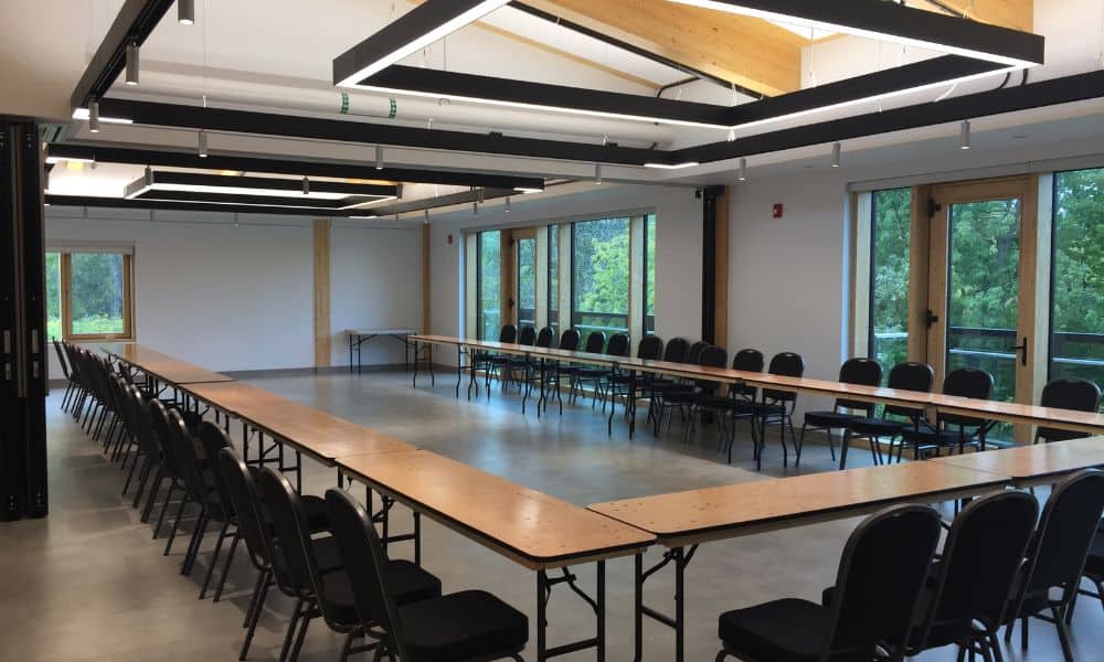 Vous n’êtes pourtant pas à des kilomètres de la ville, au fin fond de la forêt. Au contraire, vous êtes à Laval, dans le quartier Sainte-Rose, au cœur du splendide refuge faunique du Parc de la Rivière-des-Mille-Îles qui abrite de nombreuses espèces protégées. Et vous y êtes… pour affaires ? Imaginez la chance de pouvoir vous réunir entre collègues dans l’une des trois grandes salles polyvalentes du site (totalisant 195 mètres carrés), entièrement vitrées pour ne pas obstruer la vue sur le parc et sa faune unique. Peut-on trouver un site plus propre à stimuler l’imagination et la créativité au cours d’une séance de remue-méninges ? Existe-t-il un endroit plus susceptible de favoriser la consolidation d’équipe ? Émerveillement et évasion garantis, le tout de manière écoresponsable dans un environnement naturel.